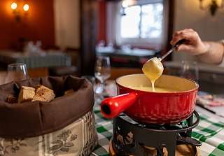 In the mood for conviviality around the table? Half-board guests can enjoy a pleasant time in our Molkerei restaurant, offering a variety of fondue and raclette dishes. As a starter, a seasonal salad bowl will be served to your table, from which you can help yourself. There is, of course, something sweet on the menu to round off your meal.